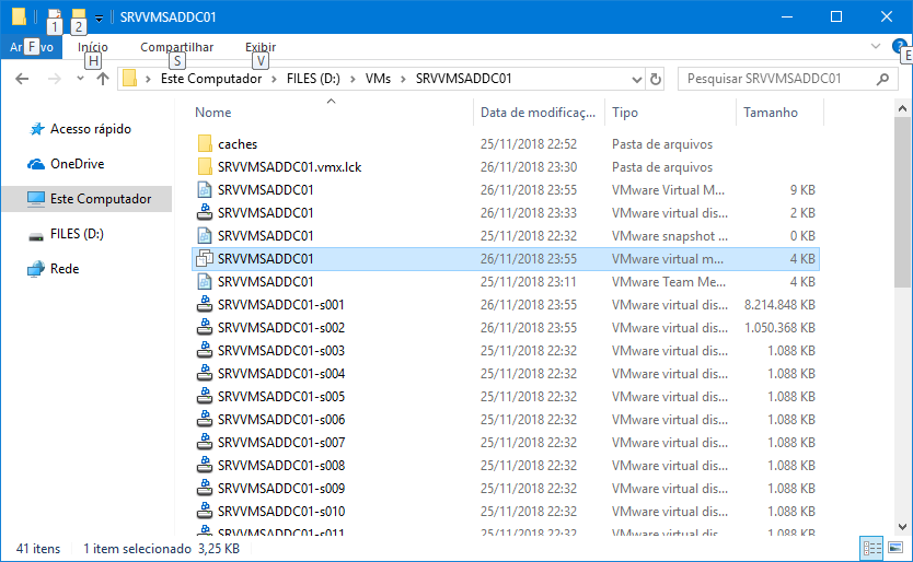 Inicialmente, vá até o diretório onde estão os arquivos referentes à VM que você quer habilitar o Hyper V